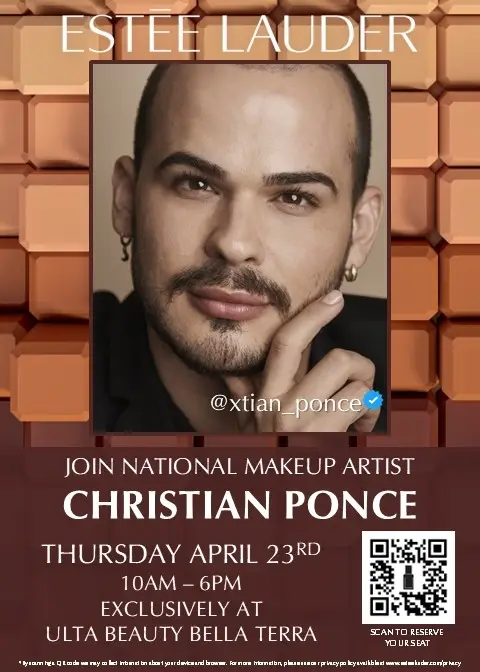 Join us for an exclusive beauty experience with Estée Lauder National Makeup Artist Cristian Ponce! Discover expert tips, personalized makeup advice, and the latest beauty trends during this special in-store event.